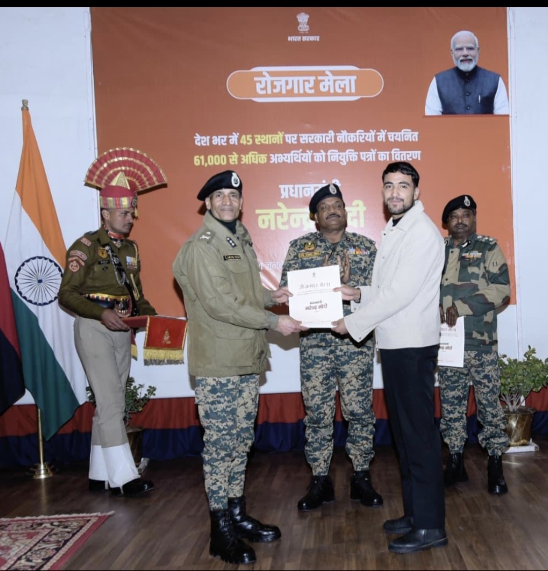 As part of the nationwide Rozgar Mela programme for distribution of appointment letters to newly recruited youth, a Rozgar Mela was organised today at the Border Security Force (BSF) Frontier Headquarters, Kashmir. The event formed part of the eighteenth tranche of Rozgar Mela being held simultaneously at 40 locations across the country.