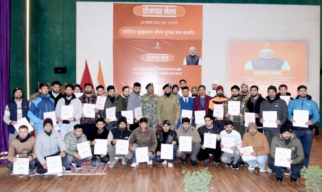 As part of the nationwide Rozgar Mela programme for distribution of appointment letters to newly recruited youth, a Rozgar Mela was organised today at the Border Security Force (BSF) Frontier Headquarters, Kashmir. The event formed part of the eighteenth tranche of Rozgar Mela being held simultaneously at 40 locations across the country.