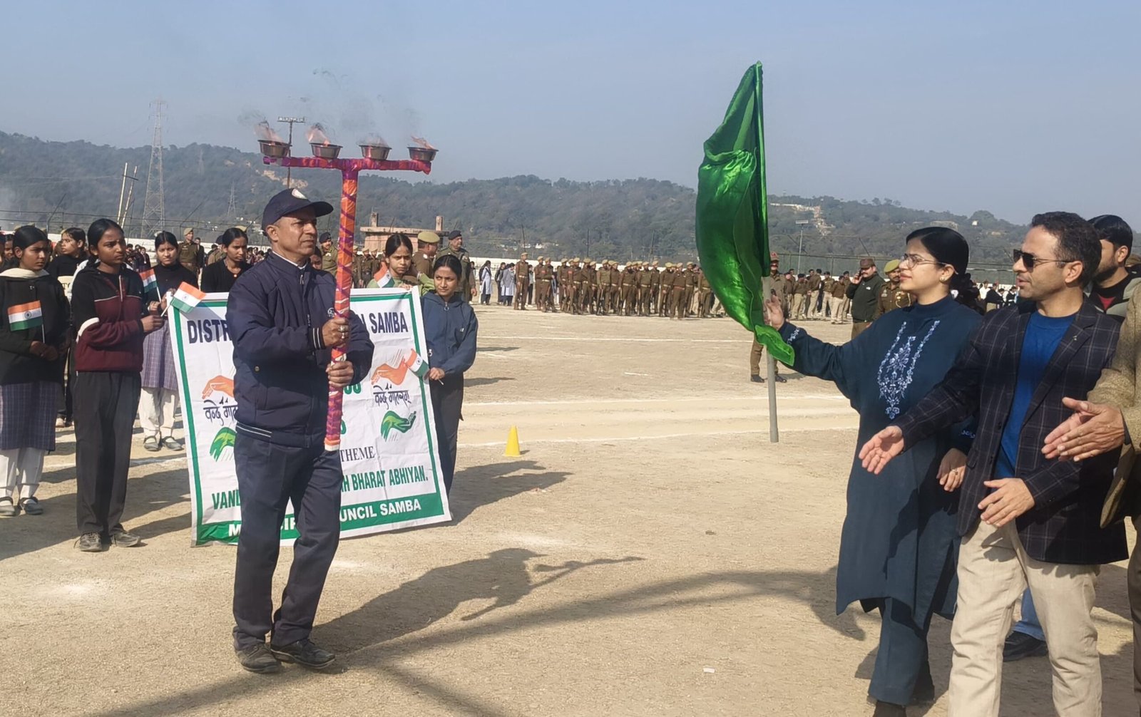 The rally was flagged off by the District Magistrate, Samba, Ms. Ayushi Sudan, from the Rani Suchet Singh Stadium. The event witnessed enthusiastic participation from students of various government and private schools across District Samba, who marched with patriotic fervour and discipline.